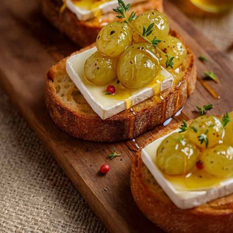 Utilizar frutas em pratos salgados é uma receita que dá certo. É o que acontece na bruschetta de brie com uva verde confitada da Expert Lorena Abreu, que ainda ganha um toque de mel, resultando no equilíbrio perfeito.