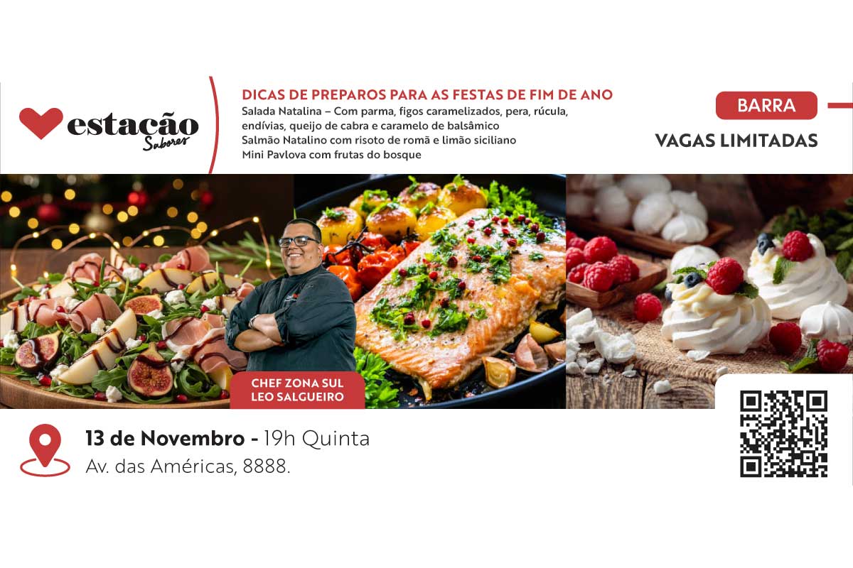 Celebre o sabor e a elegância das festas de fim de ano com uma aula especial conduzida pelo Chef Zona Sul Leo Salgueiro. Nesta experiência gastronômica inspiradora, a chef ensinará três receitas encantadoras, da entrada à sobremesa, perfeitas para surpreender à mesa e tornar suas comemorações ainda mais especiais.