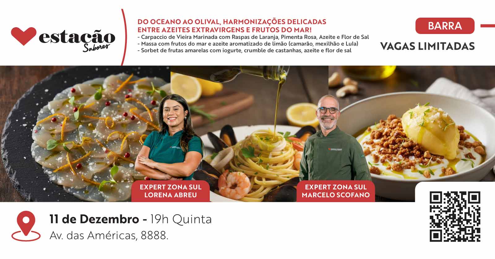 Aula Estação Sabores: Do Oceano ao Olival, harmonizações delicadas entre azeites extravirgens e frutos do mar!