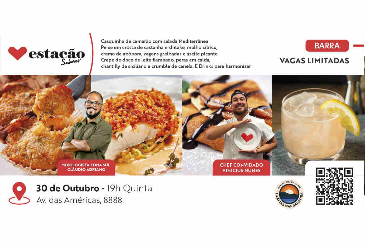 Para tornar a experiência ainda mais completa, o Mixologista Claudio Adriano apresentará drinks especialmente criados para harmonizar com cada preparo, elevando os sabores e transformando cada etapa da aula em um verdadeiro brinde à gastronomia.