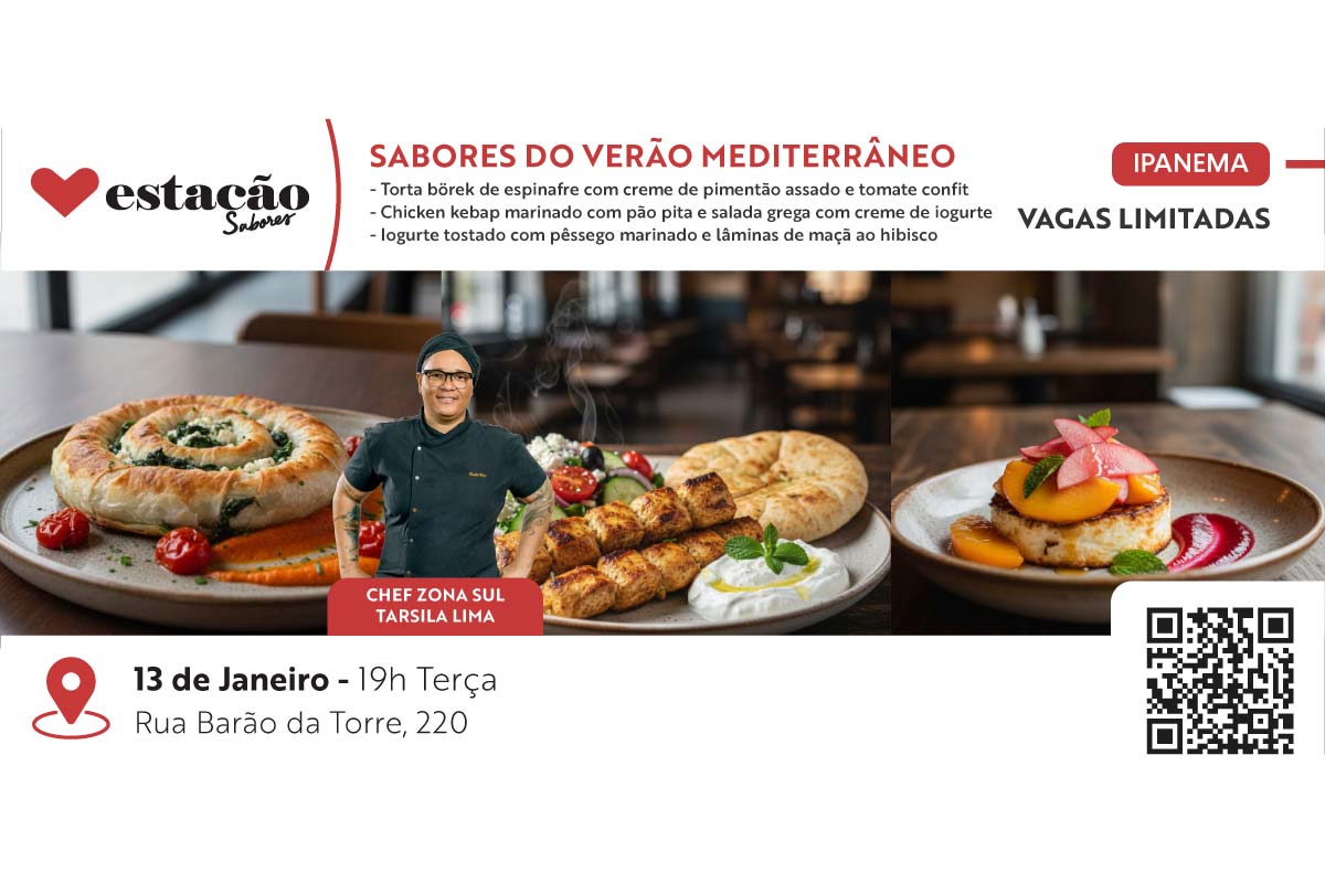 Com aromas frescos, cores vibrantes e receitas cheias de personalidade, a Chef Zona Sul Tarsila Lima convida você para uma aula-show gastronômica inspirada nos Sabores do Verão Mediterrâneo.