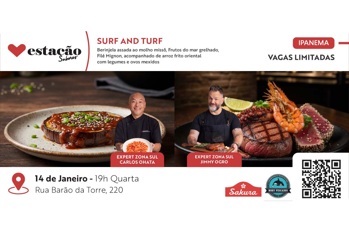 Do encontro entre a terra e o mar nasce uma experiência cheia de sabor e personalidade. Nesta aula-show gastronômica, os Experts Carlos Ohata e Jimmy Ogro se unem para apresentar o melhor da gastronomia Surf and Turf, com técnica, intensidade e combinações surpreendentes.