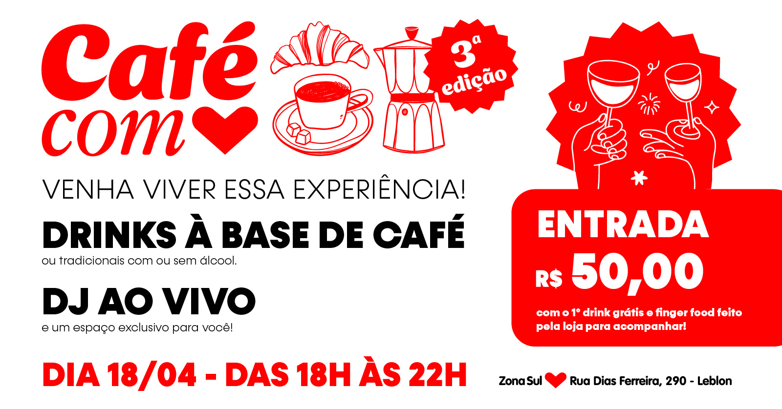 – Cada ingresso dá direito a 1 drinks a base de café e finger food free durante o evento;