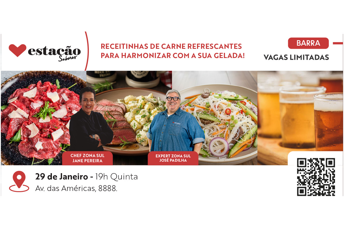 Zona Sul Santa Mônica Av. das Américas, 8888 - Barra, Rio de Janeiro, Rio de Janeiro, BrazilNo dia 29 de janeiro, em pleno alto verão, você está convidado(a) para uma experiência leve, saborosa e extremamente refrescante: uma aula prática de receitas com carne servidas frias, todas acompanhadas por cervejas especialmente selecionadas para elevar ainda mais cada prato. Serão três preparos fáceis, elegantes e perfeitos para o calor, cada um com sua […]
