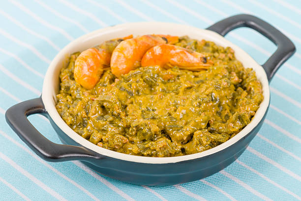 O caruru é um prato típico da culinária baiana feito com quiabo, camarão seco, azeite de dendê e uma combinação rica de temperos como cebola, alho, gengibre, castanha de caju e amendoim.