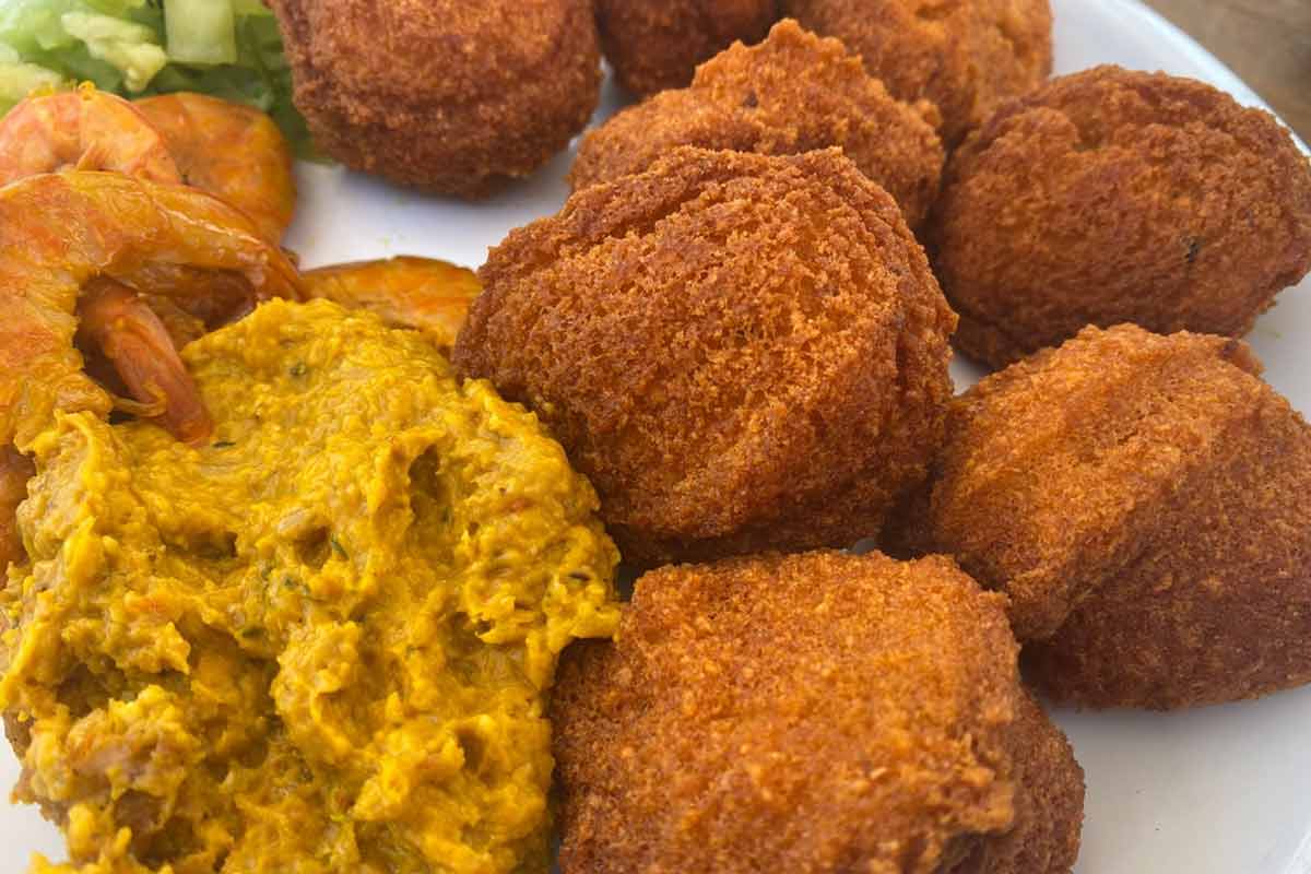 3. Fritura: com uma colher, molde bolinhos e frite no azeite de dendê quente até dourarem.
